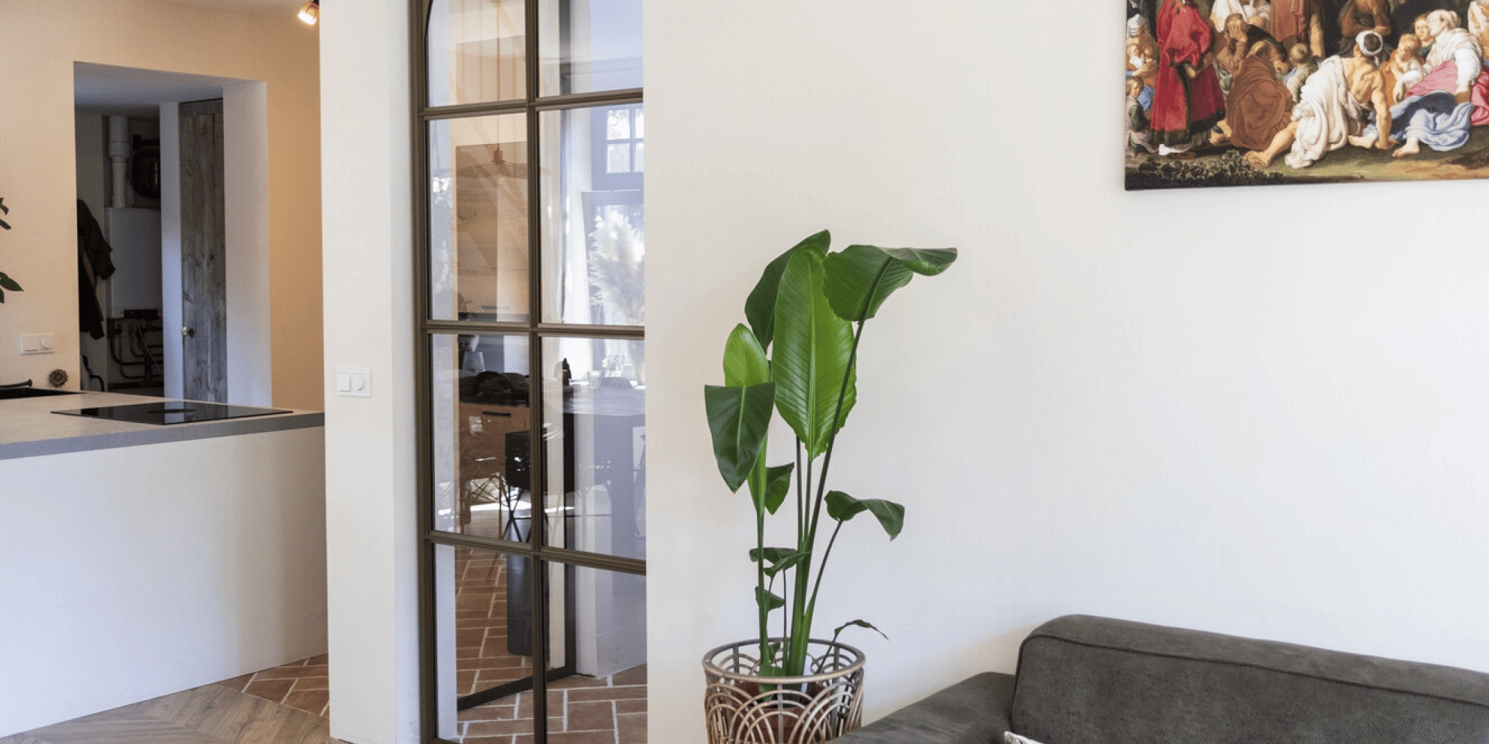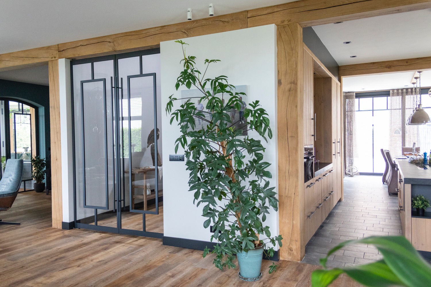 Een stalen deur in zwart vormt vaak een mooi contrast met de lichte en natuurlijke kleuren van Japandi. Liever subtieler? Kies dan voor een stalen deur in een zachte tint, zodat de deur volledig opgaat in het interieur.