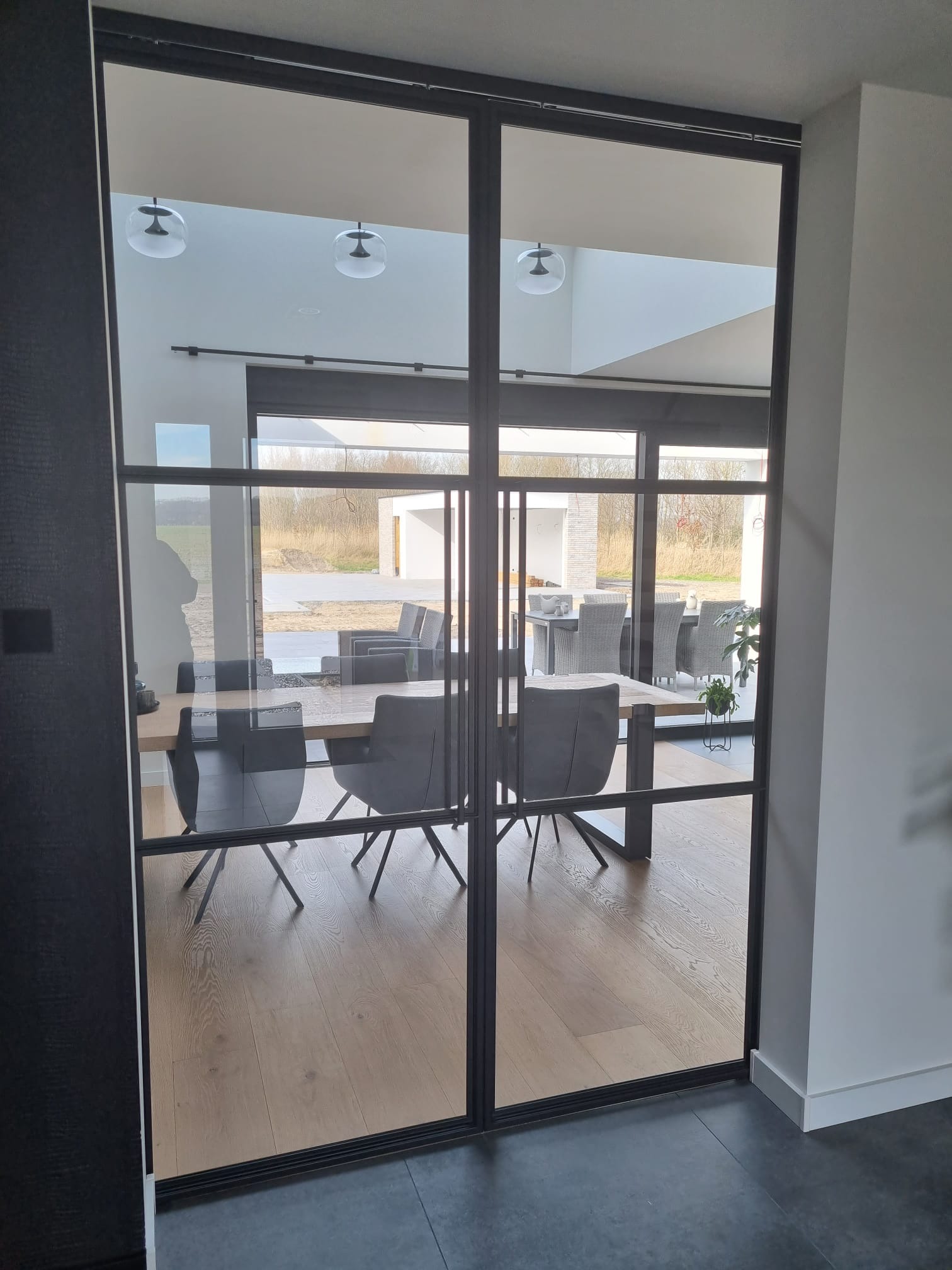 Stalen schuifdeuren als scheiding tussen keuken en woonkamer via Lignerro