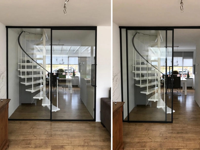 Ja, doordat je geen draaicirkel nodig hebt, zijn schuifdeuren ideaal voor compacte woonruimtes.Kan ik zelf de indeling van het glas en staal bepalen?